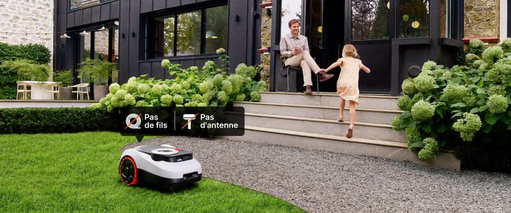 La plupart des clients installent leur tondeuse robot au bord de la pelouse pour un accès plus facile à une source d'alimentation.
